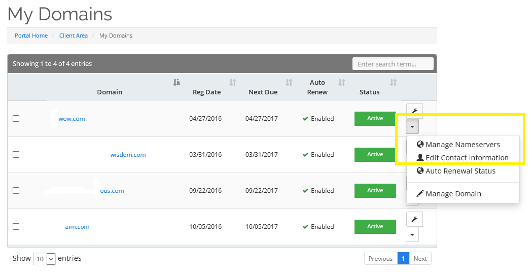 - Choose the Domain: Pick the domain you wish to update and click the down arrow.
